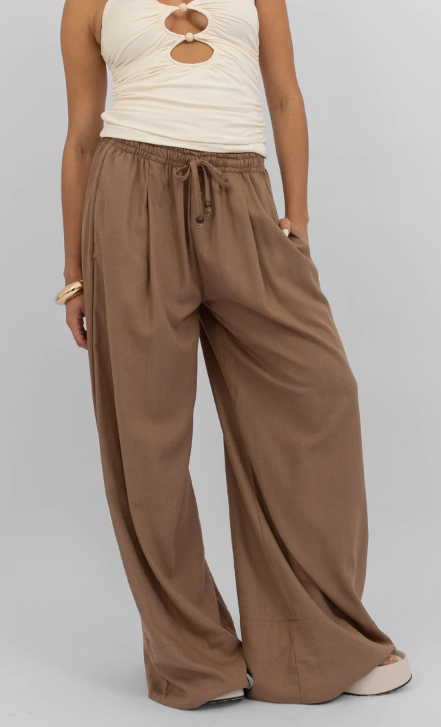 Calça Linho. Calça confeccionada em viscolinho com modelagem pantalona bem ampla. Possui elástico e cordão regulador na cintura para melhor caimento e ajuste. Dica de styling: use sua Calça Linho com a Camisa Linho. Para mais dicas como essa siga nosso @clubemartina.
